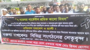মোঃ মাহাবুব আলম,রিপোর্টার।। প্রিয় শ্রমজীবী ভাই ও বোনেরা ২০২৩ সনের নভেম্বরে গার্মেন্টস শ্রমিকদের মজুরী বৃদ্ধির আন্দোলনকারীদের রাজপথে রেখে আ মনেইবিসির পাঁচ পান্ডব এবং বরও কিছু সহযোগী মালিক সমিতির সিদ্দিকুর রহমানের কাছ থেকে ঘুষ নিয়ে বিদেশে পালিয়ে যায়। ৬ নভেম্বর মন্নুজানের বাসায় নূরুলইসলাম এবং আরও কয়েকজন ঘুষ নিয়ে ১২,৫০০/- টাকা মজুরী ঘোষণা দেয়। পরবর্তীতে মজুরী আন্দোলনে ৪ জন শ্রমিকের মৃত্যু হয়। এই বিশ্বাসঘাতক শ্রমিক নেতাদের চিহ্নিত করার জন ৭ নভেম্বরে দিনটিকে কালো দিবস ঘোষণা করা হয়েছে। কালো দিবস উপলক্ষে আজ ৮ নভেম্বর বিকাল ৪.০০ ঘটিকায় জাতীয় প্রেসক্লাবের সামনে প্রতিবাদ সমাবেশ অনুষ্ঠিত হয়।