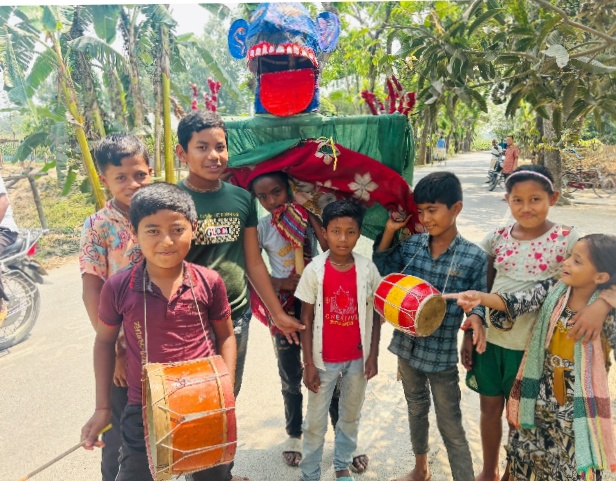 ঠাকুরগাঁওয়ে গ্রামে ঘুরে ঘুরে শিশুদের আবদার ‘রাক্ষস এসেছি রে...চাল দে’