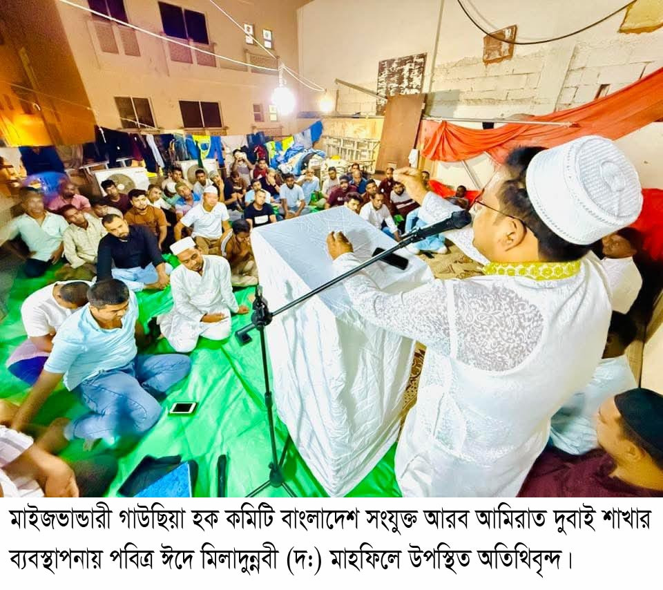 মাইজভান্ডারী গাউছিয়া হক কমিটি বাংলাদেশ সংযুক্ত আরব আমিরাত দুবাই শাখার (৫৫৭) ব্যবস্থাপনায় পবিত্র ঈদে মিলাদুন্নবী (দ:) উদযাপন উপলক্ষে আলোচনা সভা ও দোয়া মাহফিল অনুষ্ঠিত হয়।